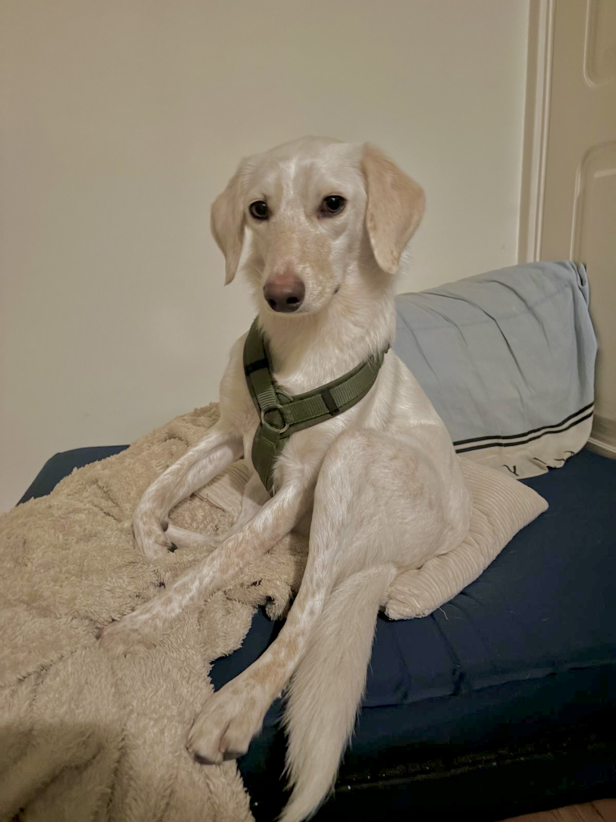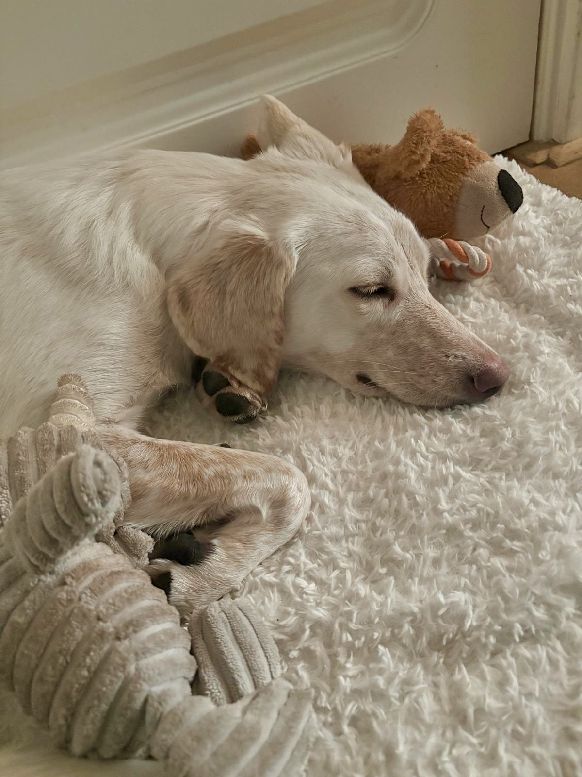 Hi, my name is Winnie, and I’m currently in a foster home in the Netherlands, looking for my forever home. I’m a very sweet and sensitive young rescue dog. I was rescued from the streets in Cyprus, I was very scared. I have a gentle character and can be a little shy at first meeting, but once I have gained enough confidence to trust you, I am a true cuddle bug. I adore my two foster brothers (also my kitty foster brother 😻). I also love sniffing games as well as my favorite stuffed toys. I have already experienced a lot in my life from being abandoned, scarred and hungry living as a stray in Cyprus, to finding caring and loving people at the shelter when I was rescued and now being in a wonderful foster home in the Netherlands. With every step I take I know I am getting closer to my forever home.