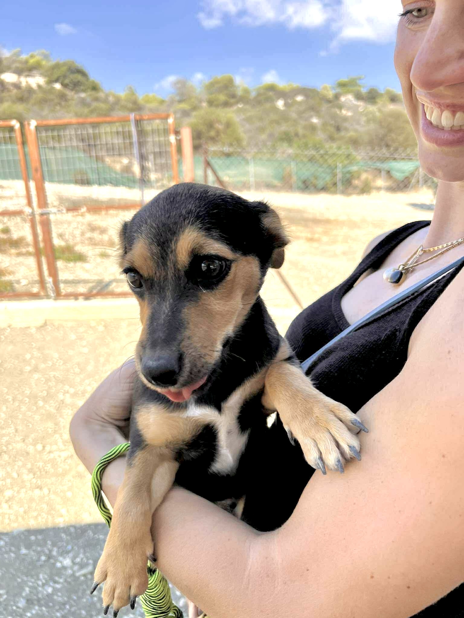 Hi, I am Yumi. One could say that I am a typical puppy who loves to cuddle and play with the other puppies. I happily jump and run around, I am overflowing with joy of life and excitement. At the shelter I love to be around the volunteers and once I am out in the playground there is no stopping me. I will come for play and cuddles and I happily share my good nature and friendly character.