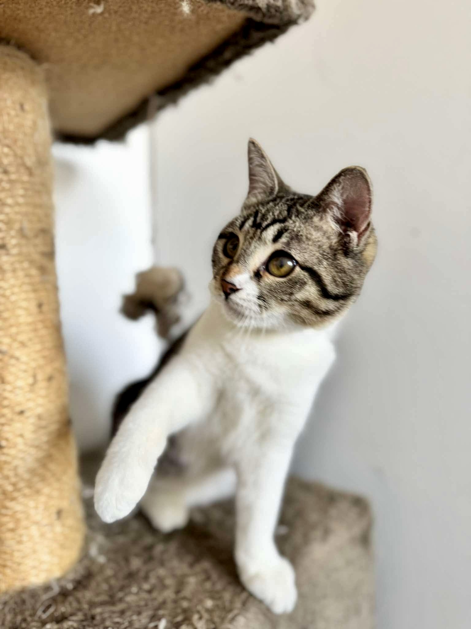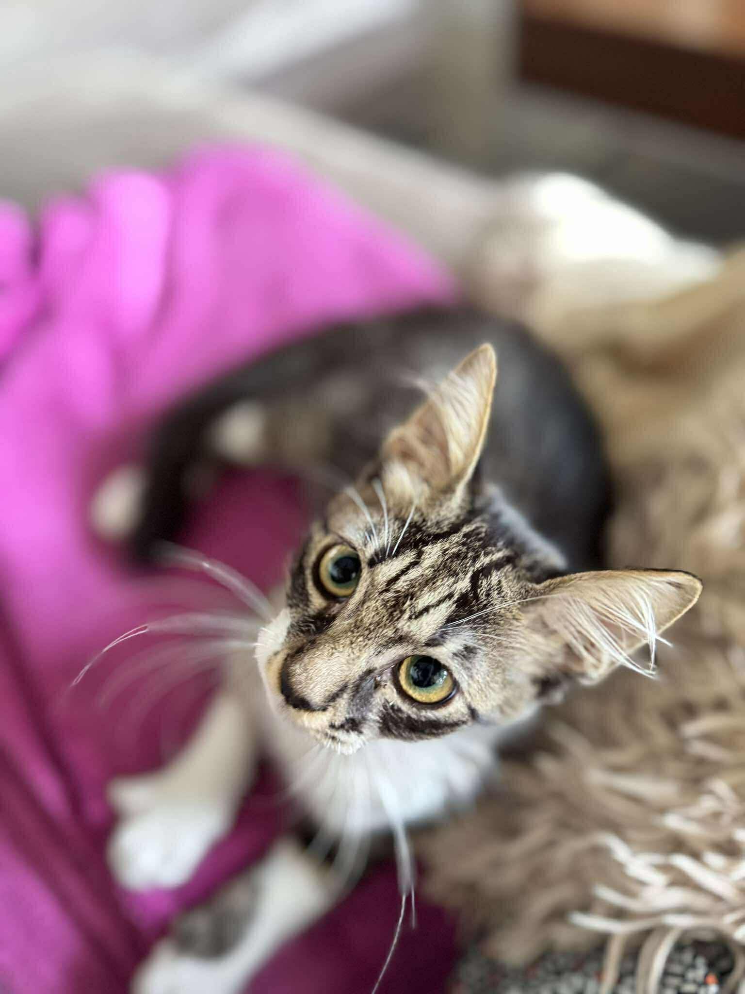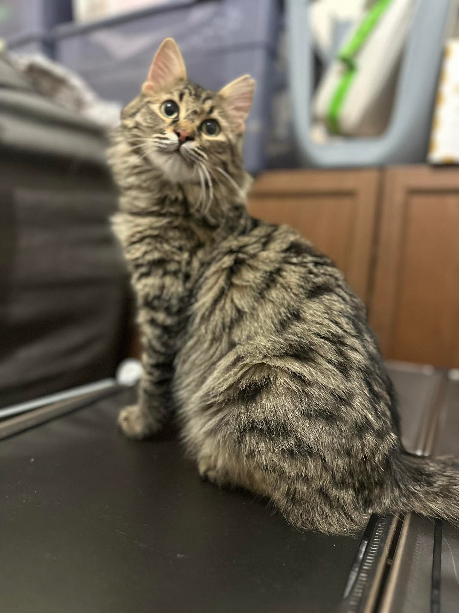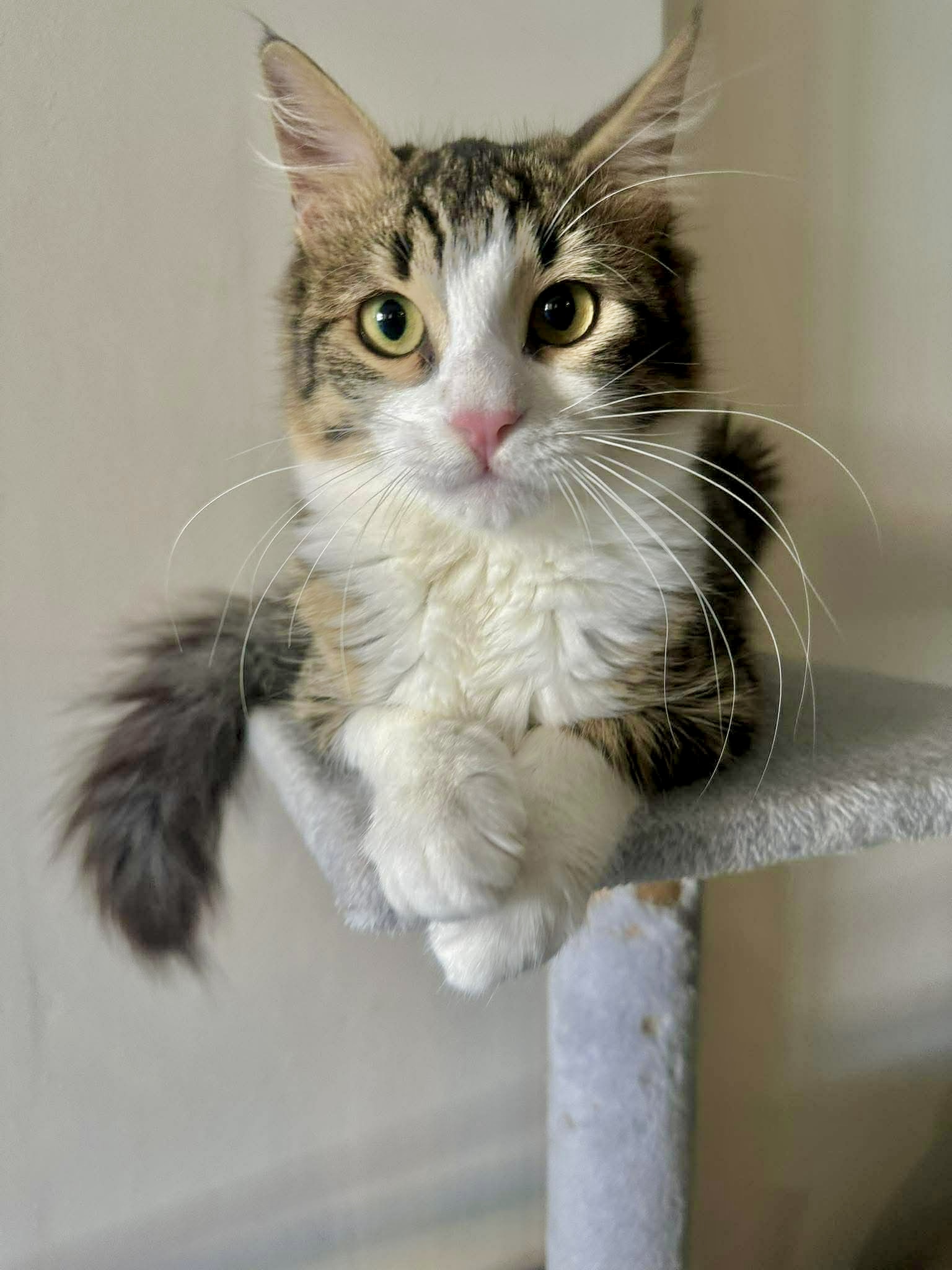 GISMO Beautiful brown tabby & white semi-longhair kitten with green eyes and big fluffy tail, 6 months old