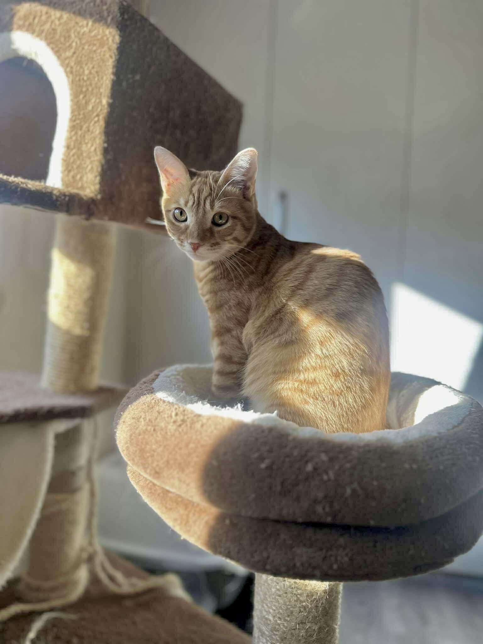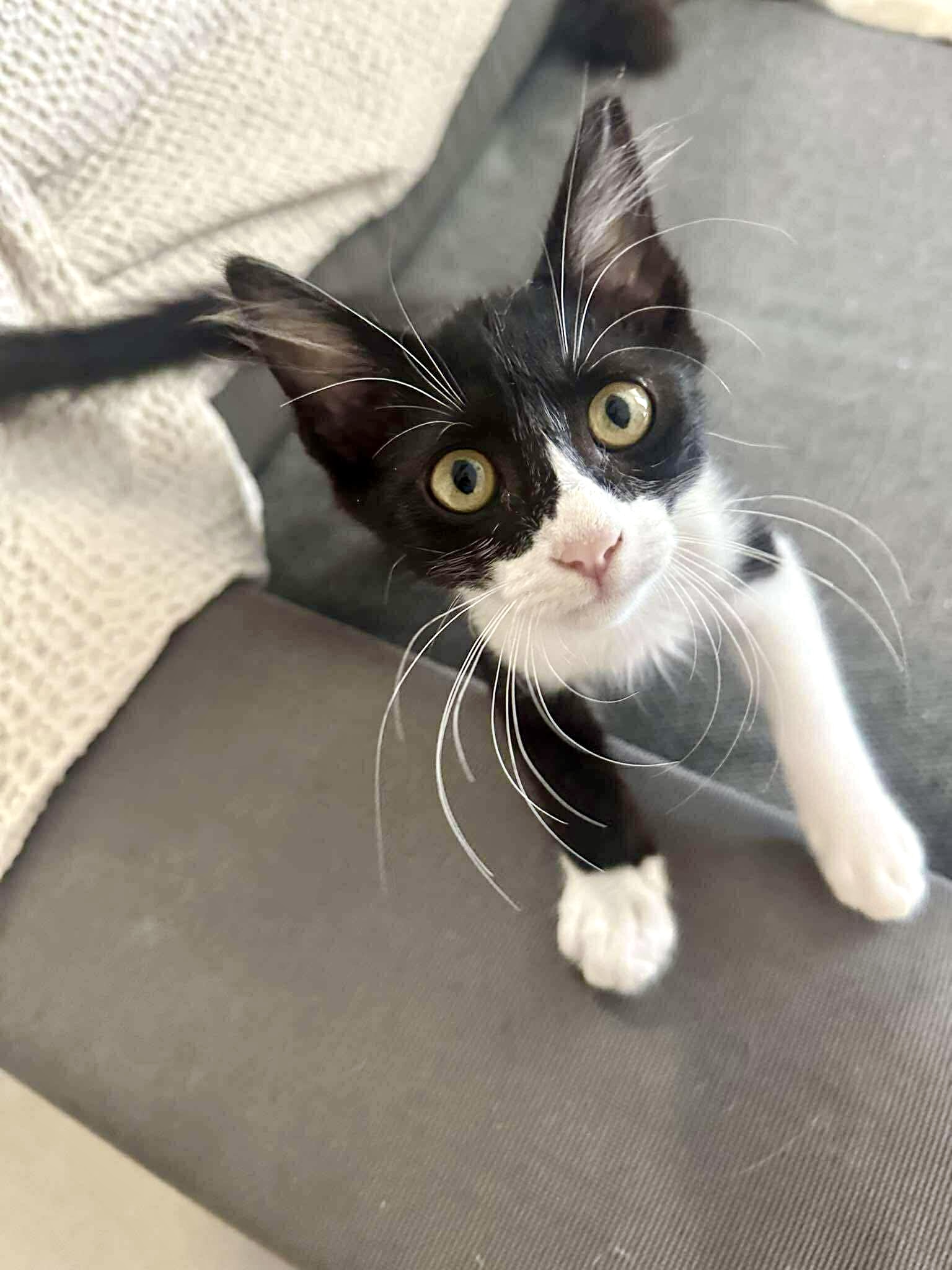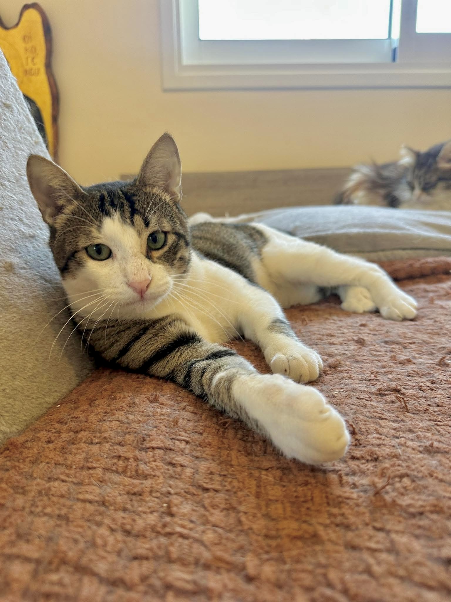 GISMO Beautiful brown tabby & white semi-longhair kitten with green eyes and big fluffy tail, 6 months old