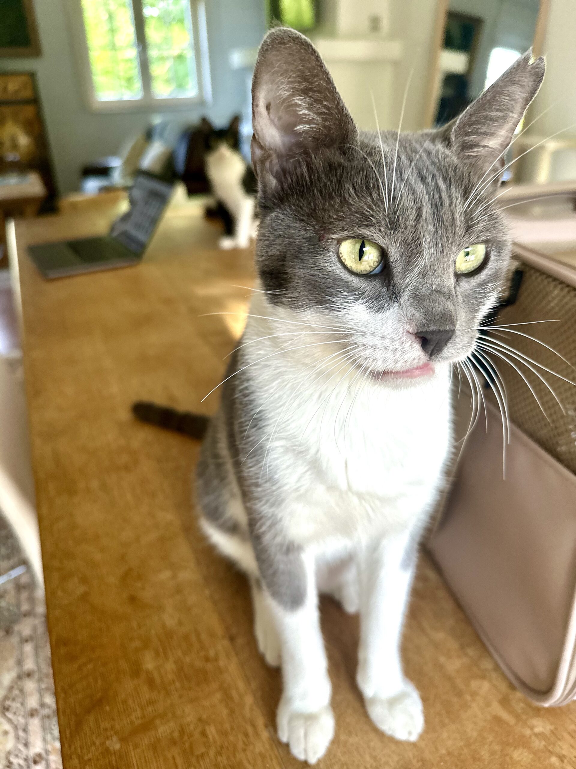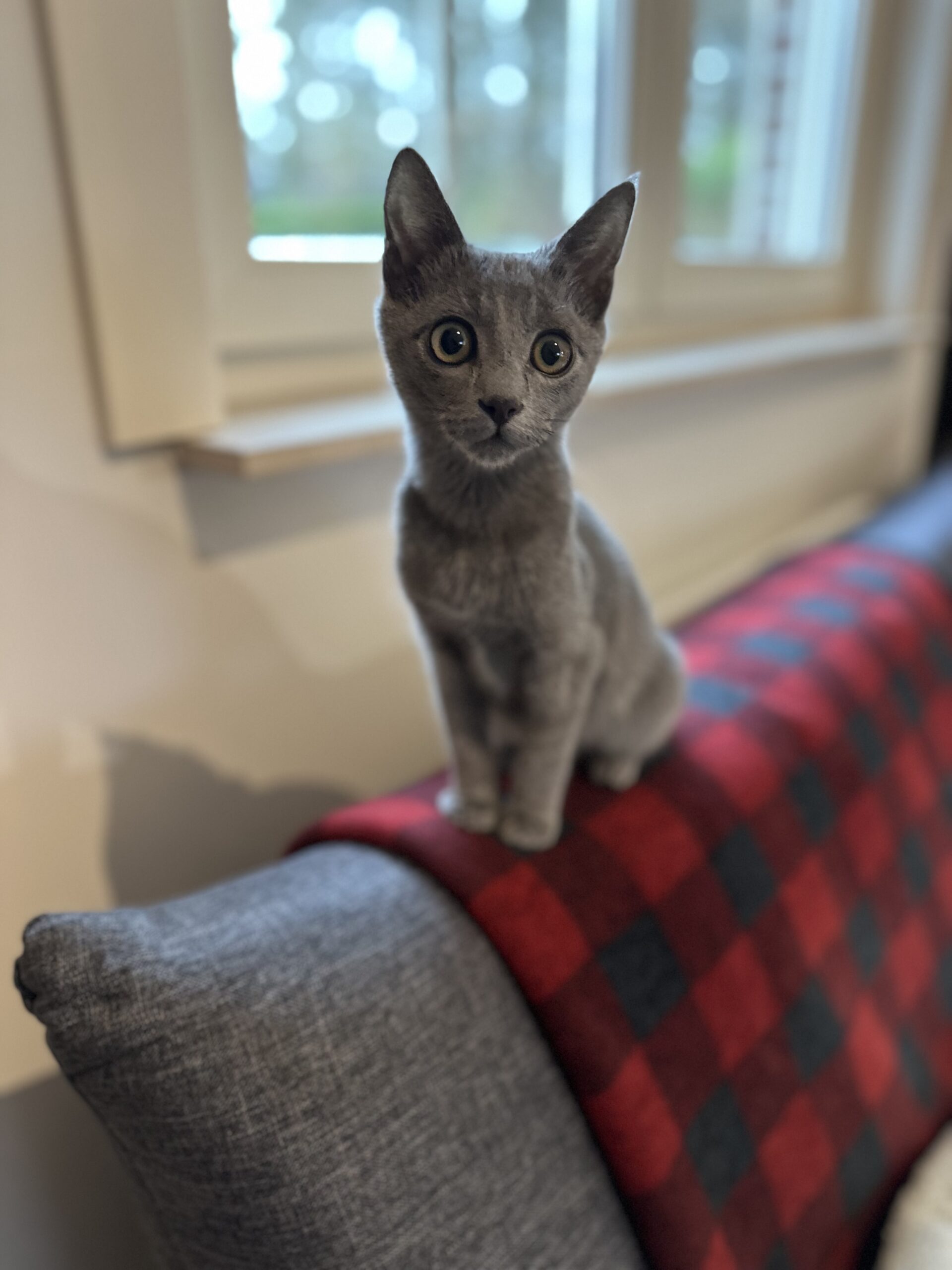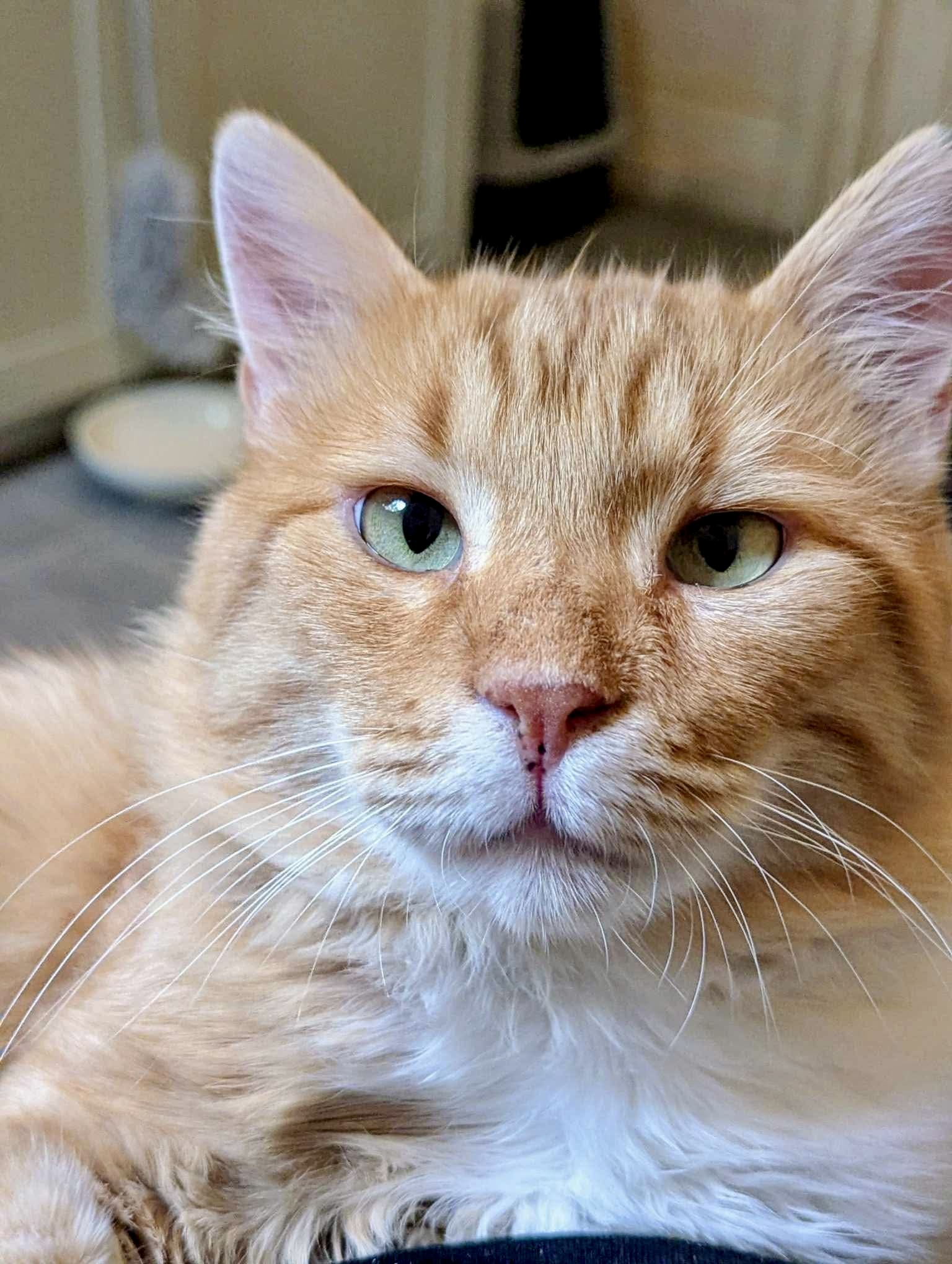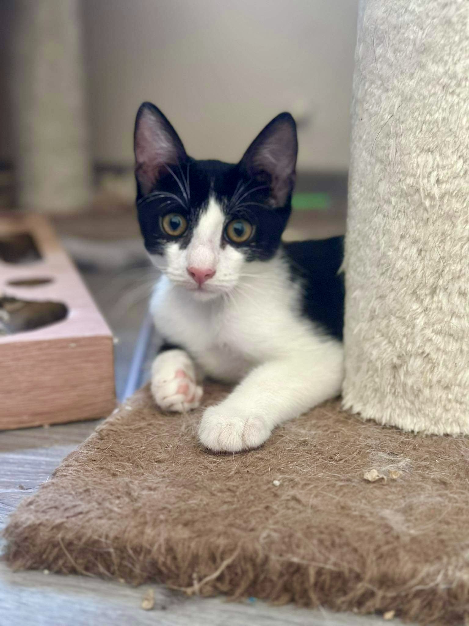 GISMO Beautiful brown tabby & white semi-longhair kitten with green eyes and big fluffy tail, 6 months old